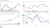 ドル円(USDJPY)、ドルインデックス(DXY)、ダウ(DJ-DJI)、ナスダック(NASDAQ-NDX)、日経平均(TVC-NI225)、米国債10年物利回り(TVC-US10Y)、WTI原油(WTICOUS)、金(XAUUSD)、ビットコイン(BTCUSD)、を監視しています。