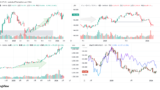 ドル円(USDJPY)、ドルインデックス(DXY)、ダウ(DJ-DJI)、ナスダック(NASDAQ-NDX)、日経平均(TVC-NI225)、米国債10年物利回り(TVC-US10Y)、WTI原油(WTICOUS)、金(XAUUSD)、ビットコイン(BTCUSD)、を監視しています。
