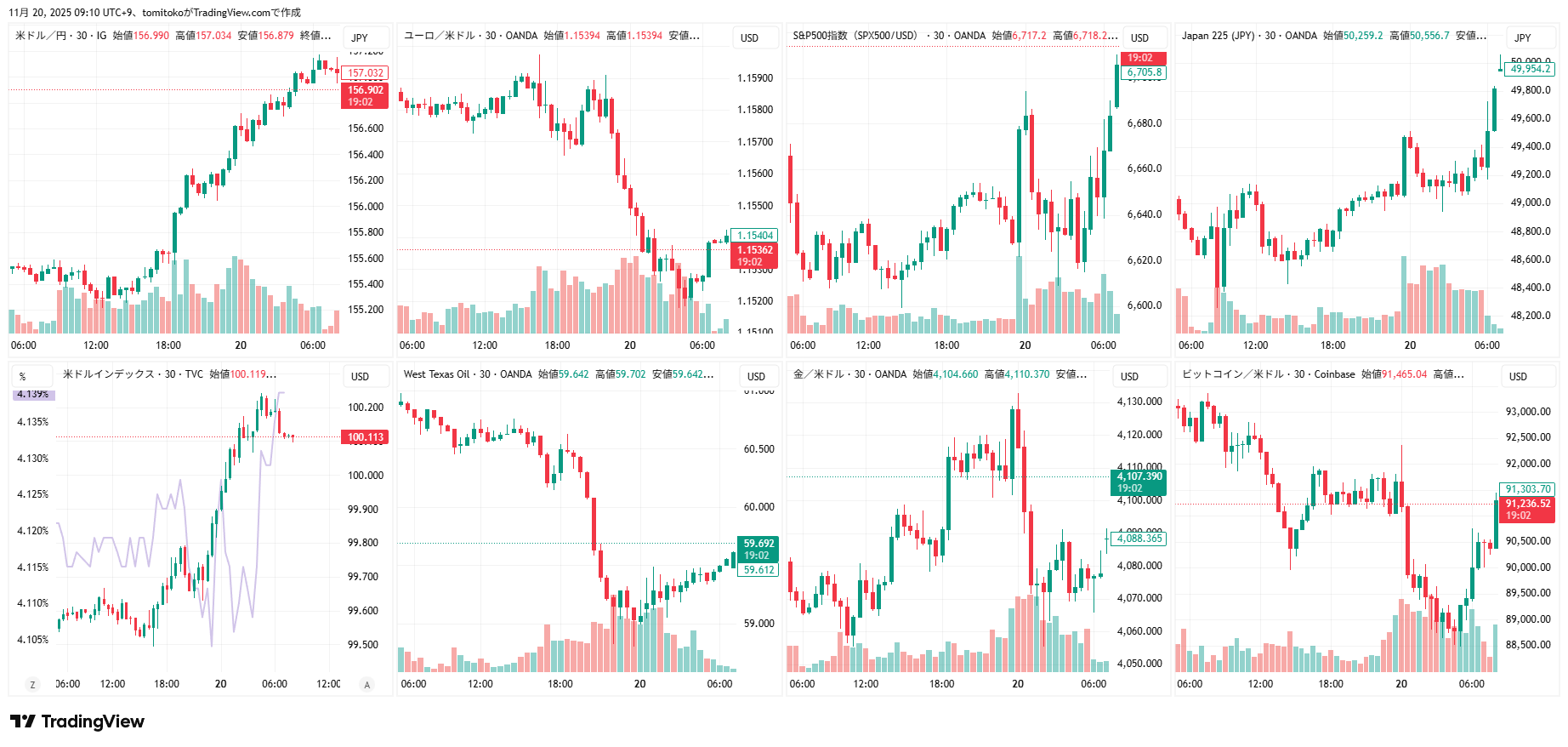 【11/21(金)】再び利下げ期待で米株反発、ドル円やや円高156円前半へ【損益:×】