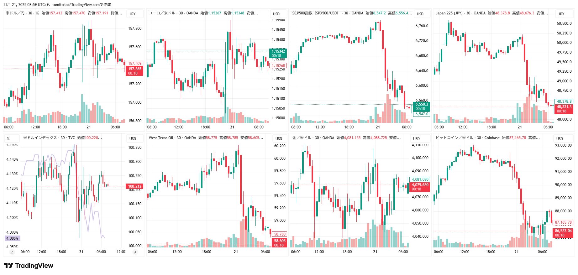 ・金曜日 続落で始まり急反発(AI・半導体株に押し目買い) pic.twitter.com/TOiTuzKOHu— にこそく (@nicosokufx) November 21, 2025