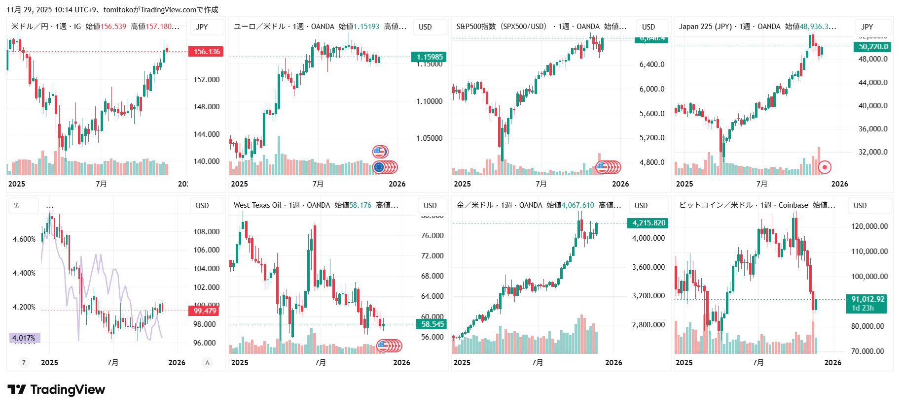 ↓先週末(2025年11月17日-21日)、相場はこんな感じで終わりました。