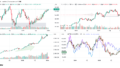 ドル円(USDJPY)、ドルインデックス(DXY)、ダウ(DJ-DJI)、ナスダック(NASDAQ-NDX)、日経平均(TVC-NI225)、米国債10年物利回り(TVC-US10Y)、WTI原油(WTICOUS)、金(XAUUSD)、ビットコイン(BTCUSD)、を監視しています。