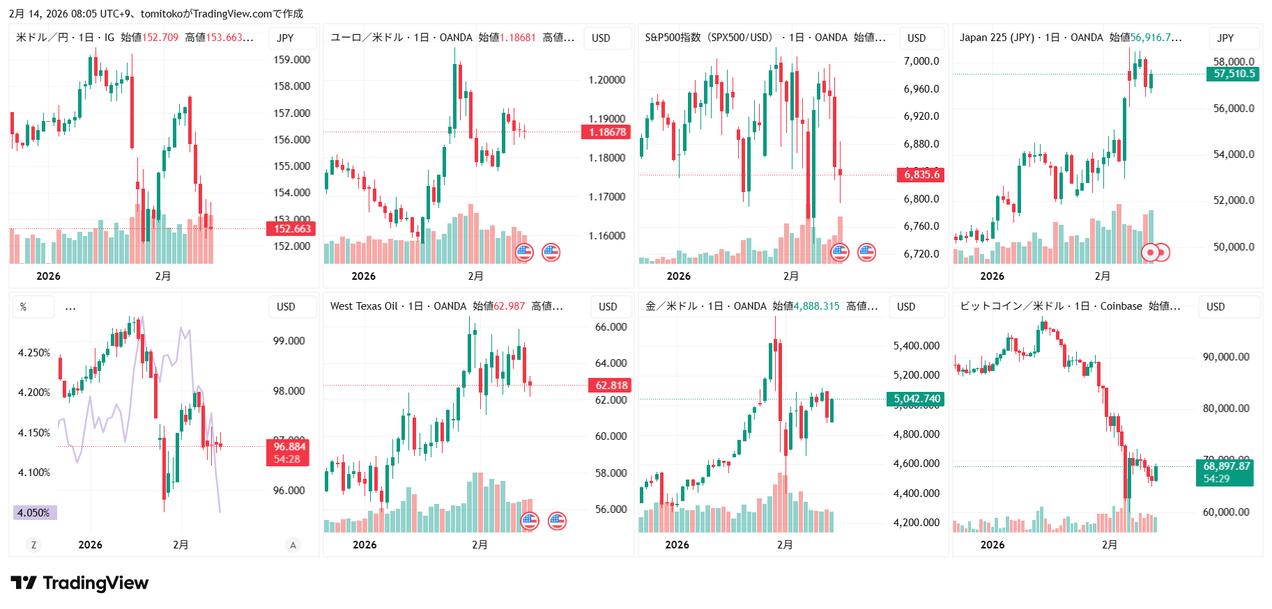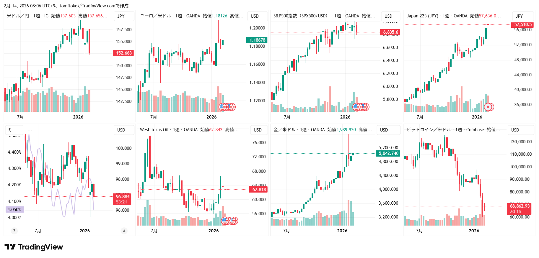 ↓先週末(2026年2月2日-6日)、相場はこんな感じで終わりました。