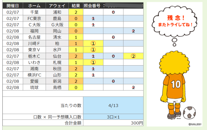 【前回totoの結果】まずは反省会~第1608回 toto(2/7,8)