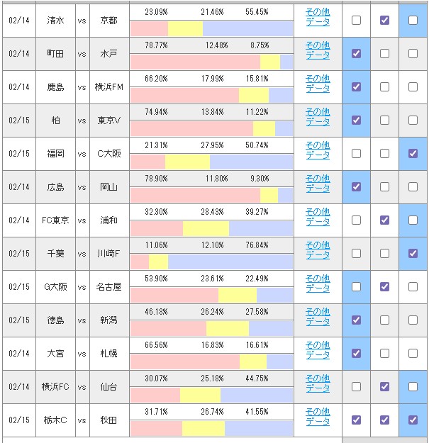 第1609回 toto(2/14,15)過去の対戦実績よりオカルト判断