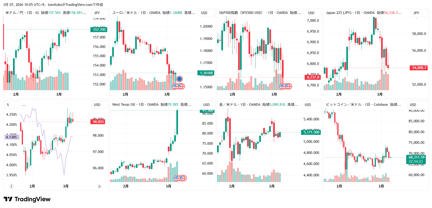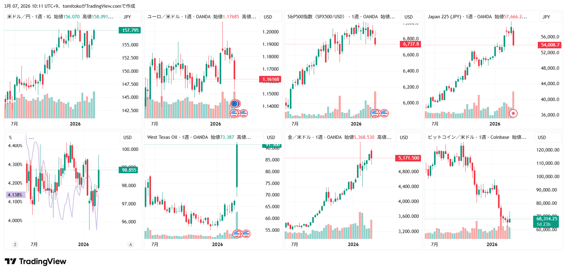 【一週間の振り返り】中東リスクおさまらず、原油急騰、有事のドル買い続く【2026年3月2日-6日】