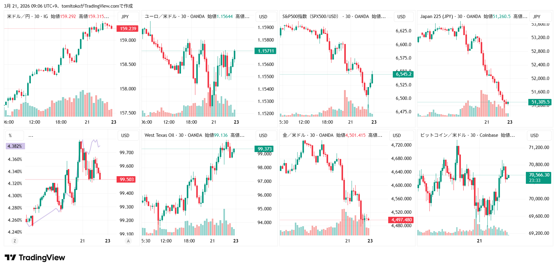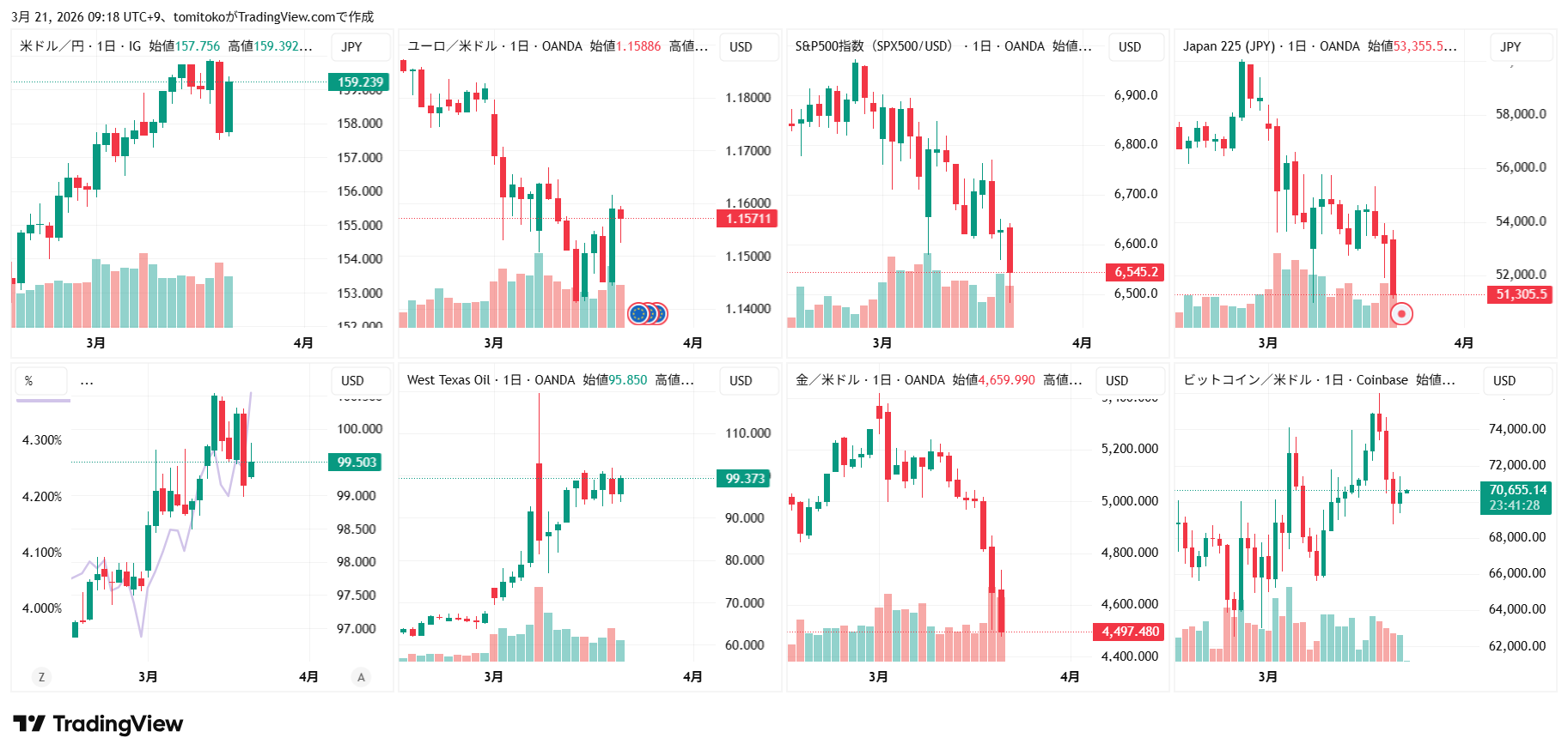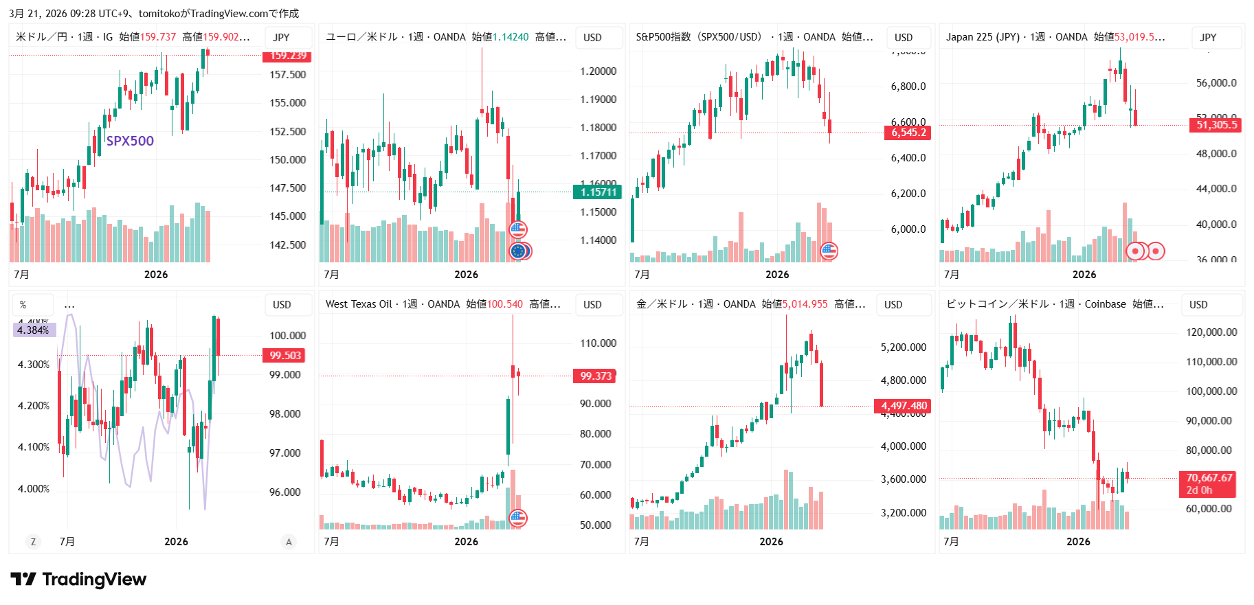 ↓先週末(2026年3月9日-13日)、相場はこんな感じで終わりました。